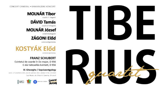 Centrul de Cultură ArcuşCasa Muzicii din Sfântu Gheorghe organizează vineri, 17 octombrie a.c., ora 20.00,  un concert cameral extraordinar susţinut de cvartetul TIBERIUS și de violoncelistul Előd KOSTYÁK.